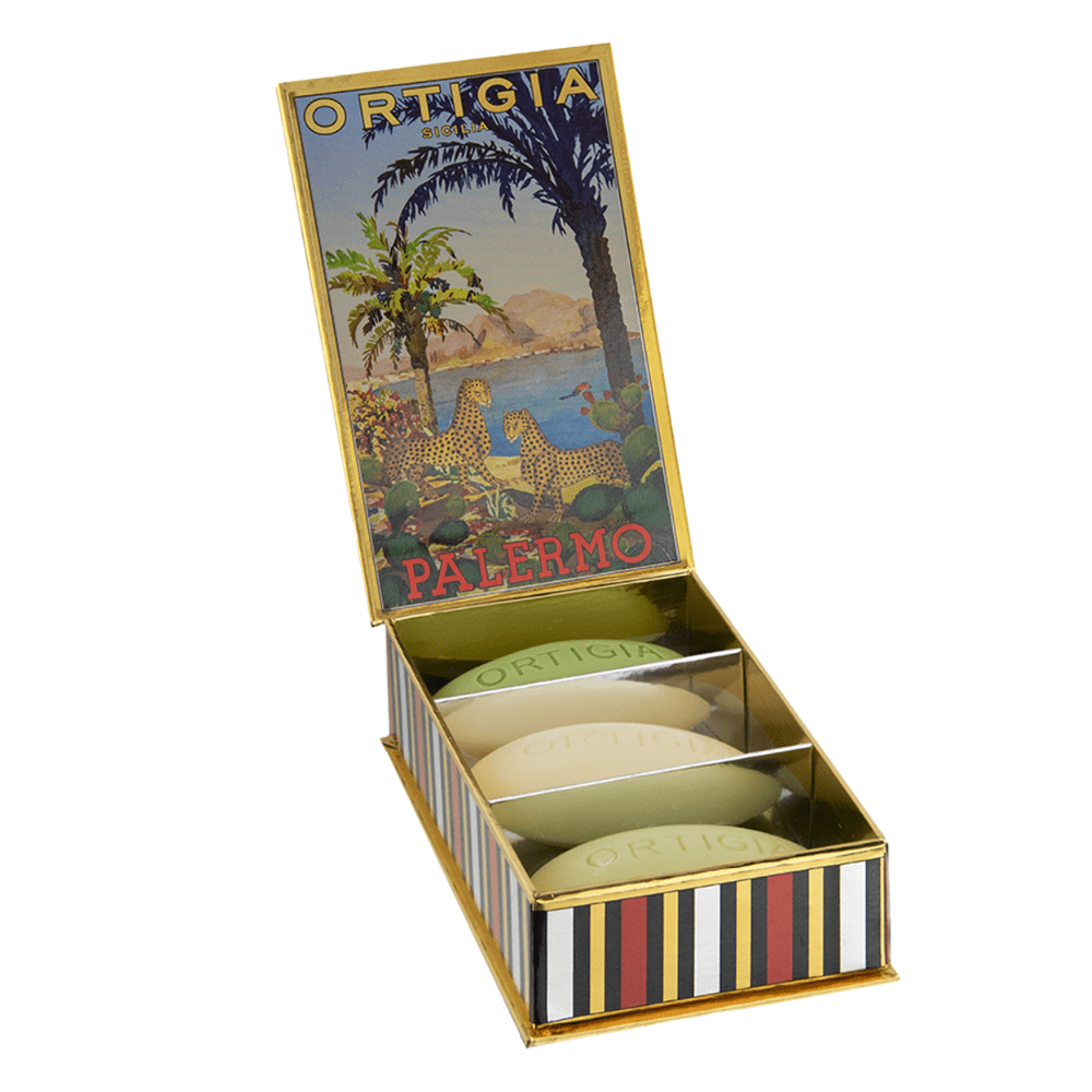 This stunningly packaged soap set features 3 of Ortigia Sicilias famous scents. Packaged in the most beautiful box, worthy of display and championing some of Italy's great cities.