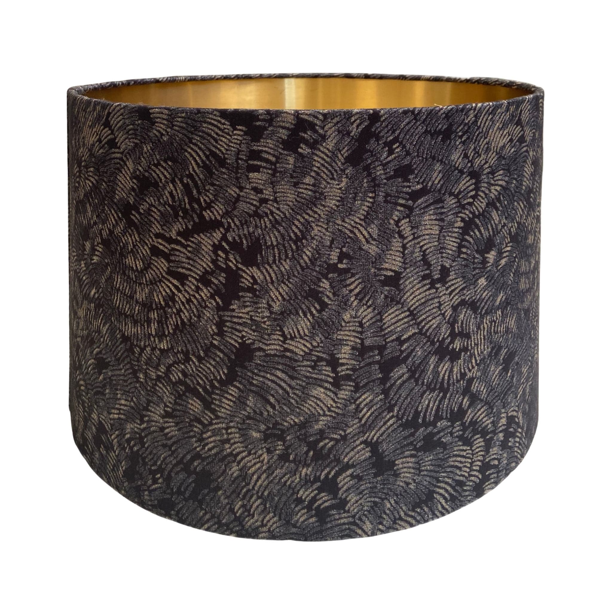 Lined in gold, the interior enhances the warmth of the light while highlighting the metallic accents within the fabric. Elegant and dramatic, this shade works beautifully on floor lamps or pendant lamps in living rooms, bedrooms or sophisticated contemporary interiors.